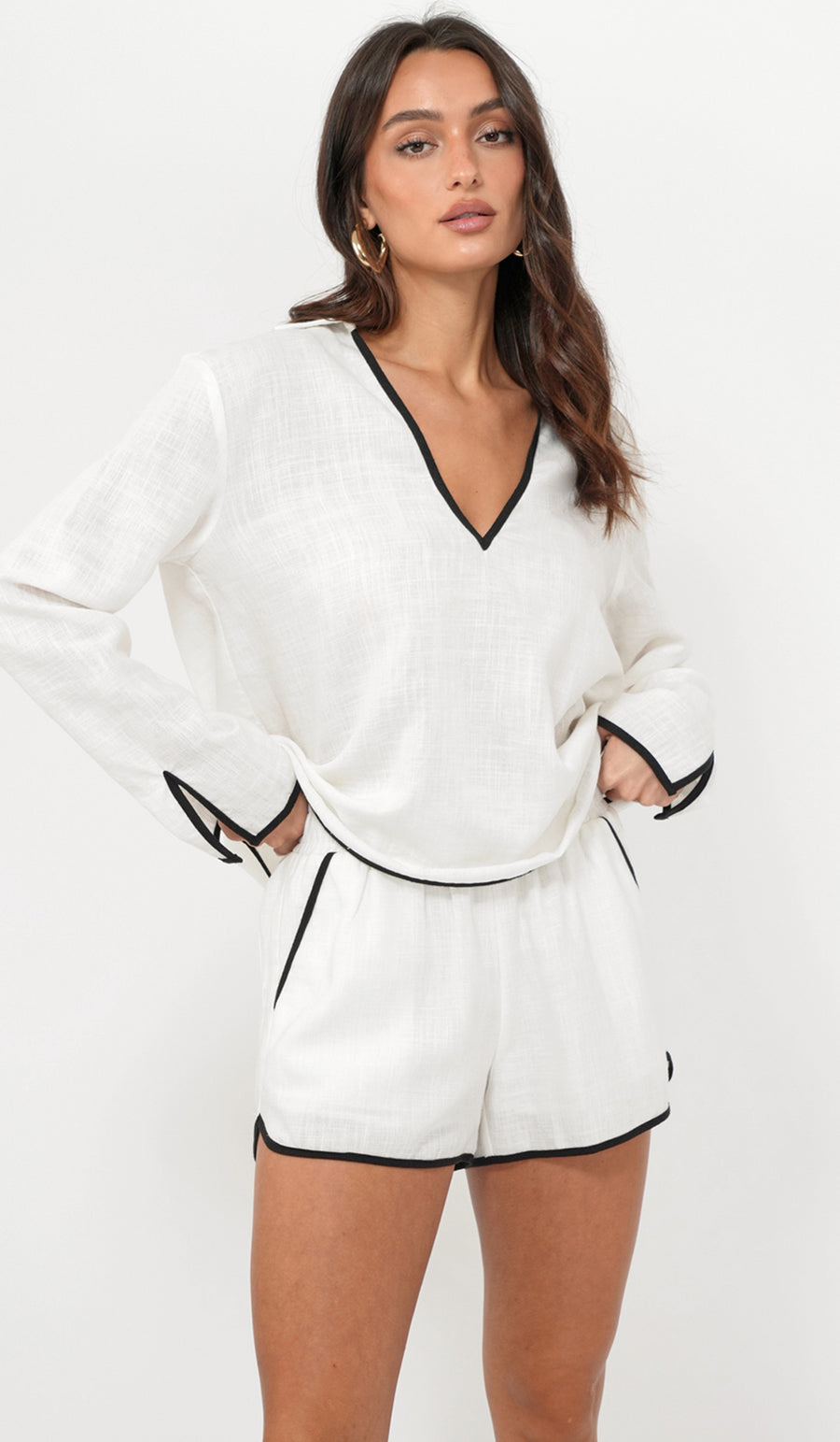 Delilah Scarf Neck Short Puff Sleeve Blouse