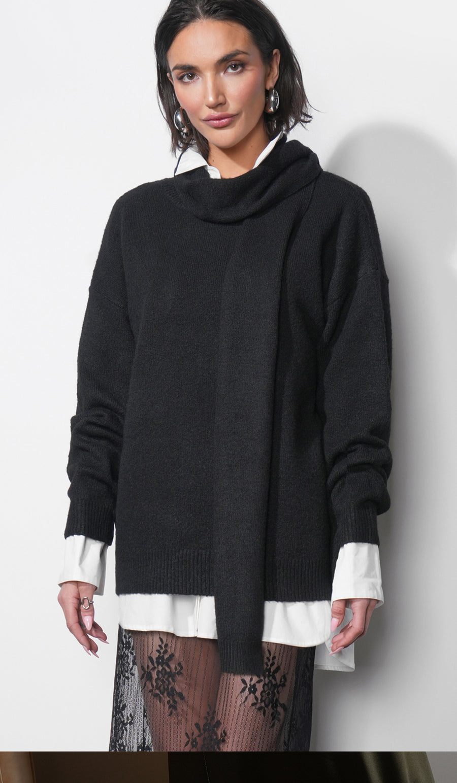 Danica Oversized Stripe Button Up Shirt W/ Tie Neck