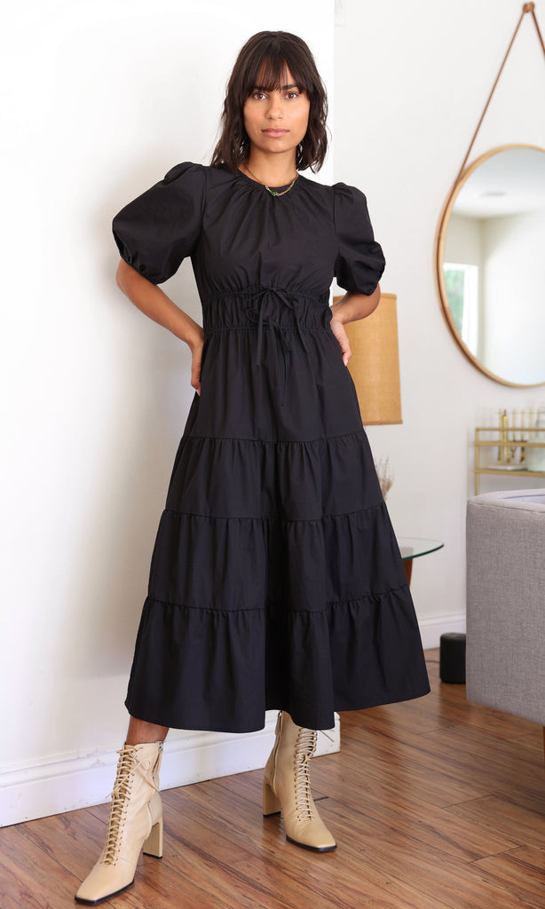 Lanis Stripe Smocking Removable Strap Midi Dress