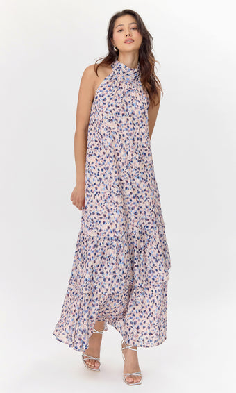 Carina Printed Halter Tiered Maxi Dress