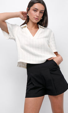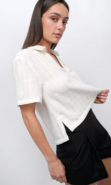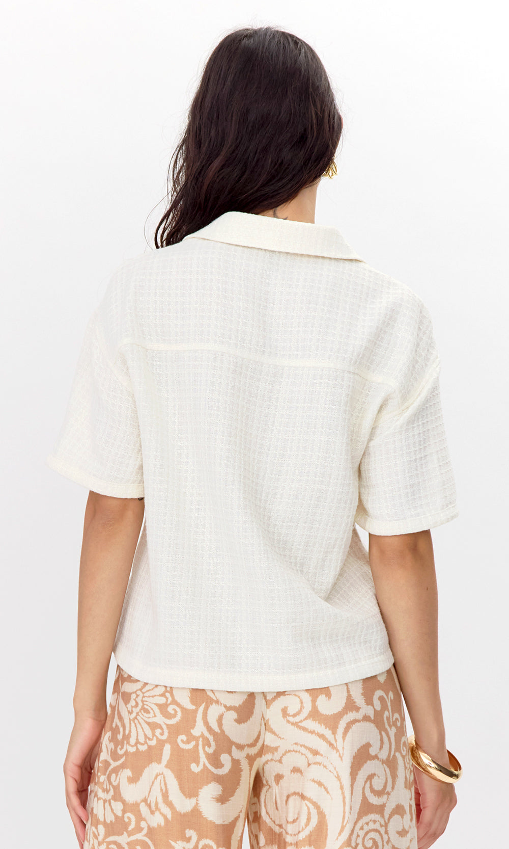 Crafted with a waffle-textured fabric, this lightweight polo has a boxy silhouette that can be easily styled for a relaxed and casual look.