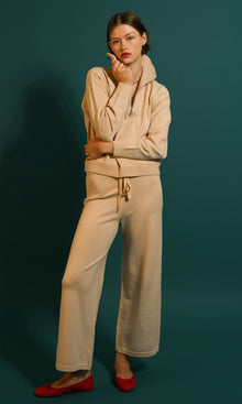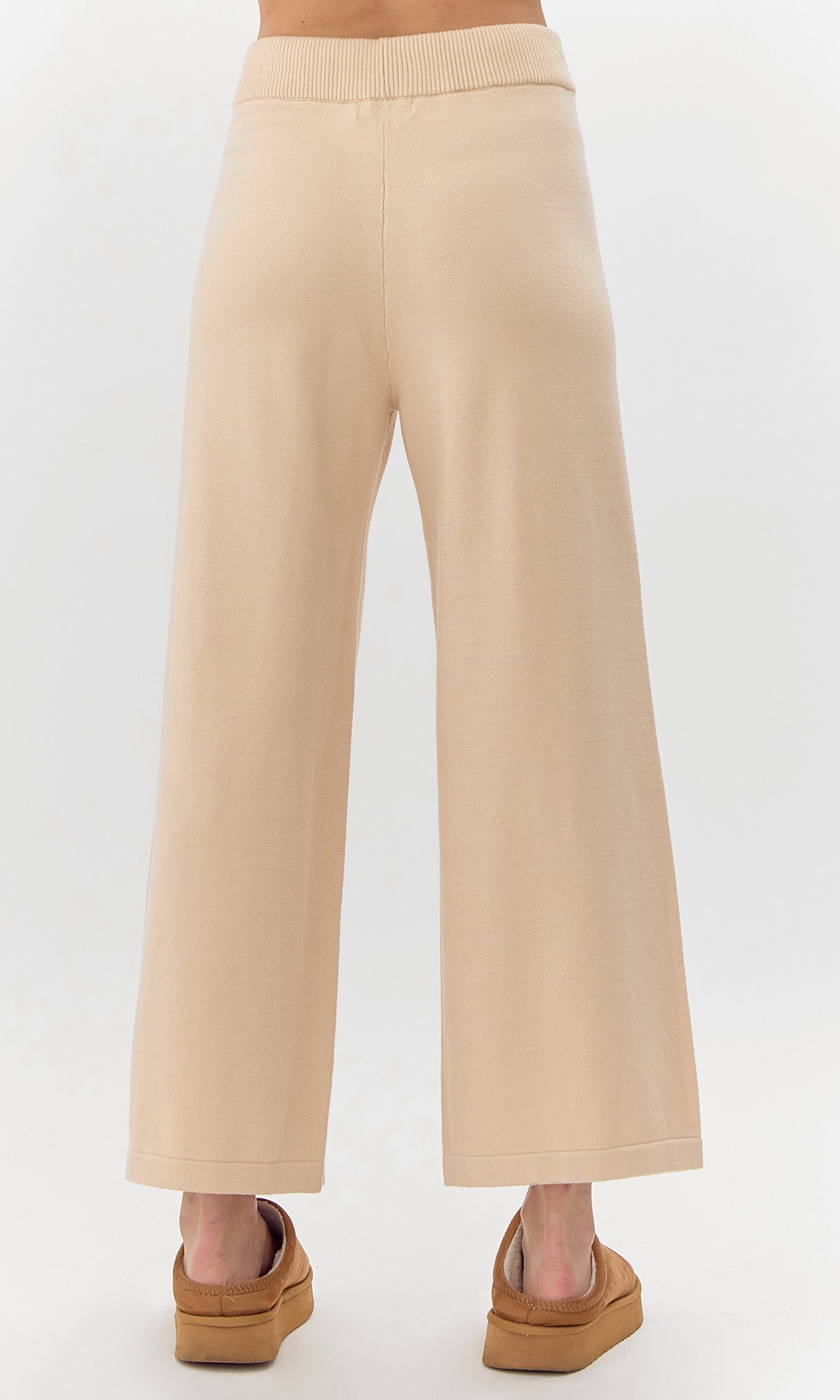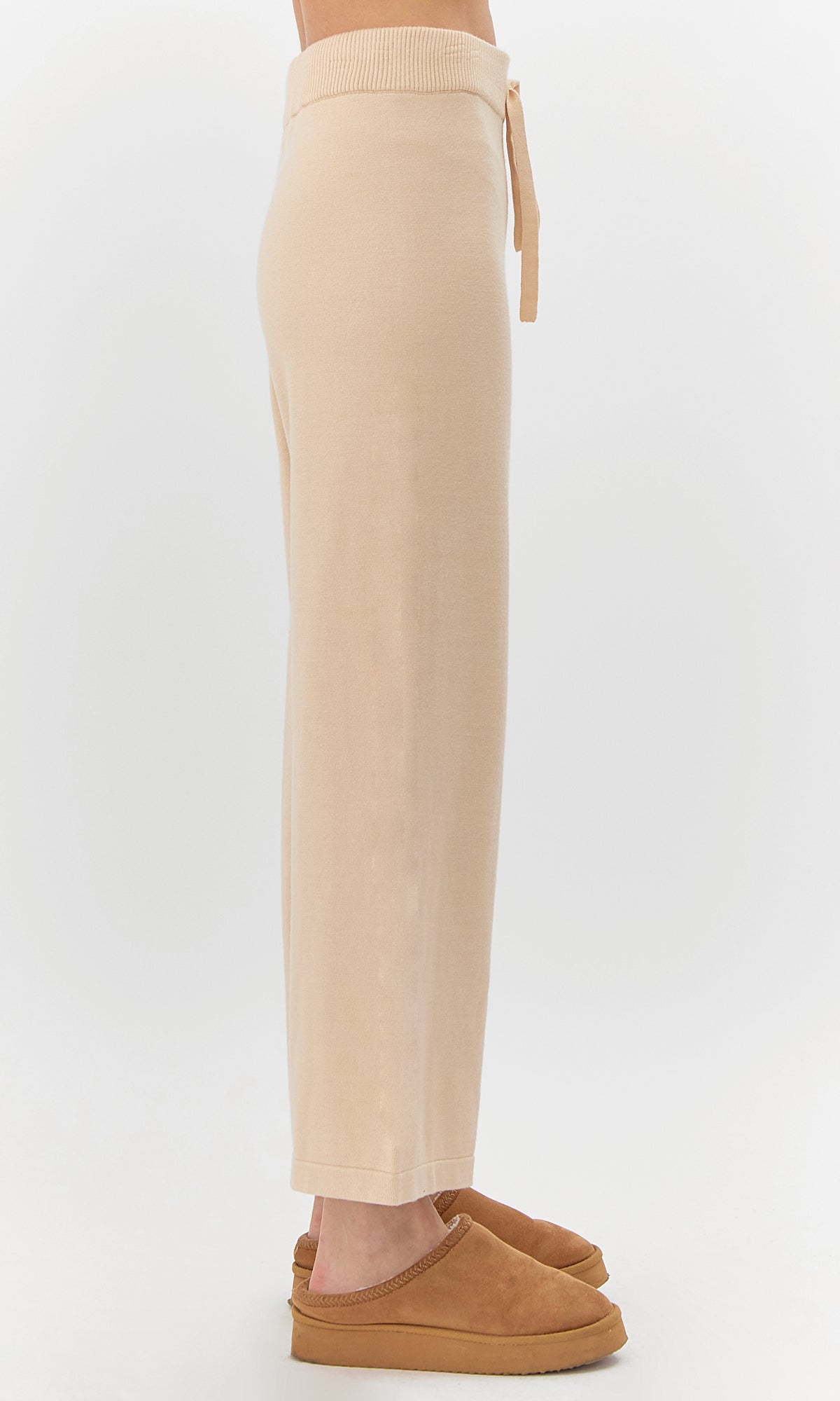 Knit, wide-legged lounge pants fastened with a drawstring waist. This piece can be paired with the Cruz Cozy Knit Sweater Top or with t-shirts and tank tops.