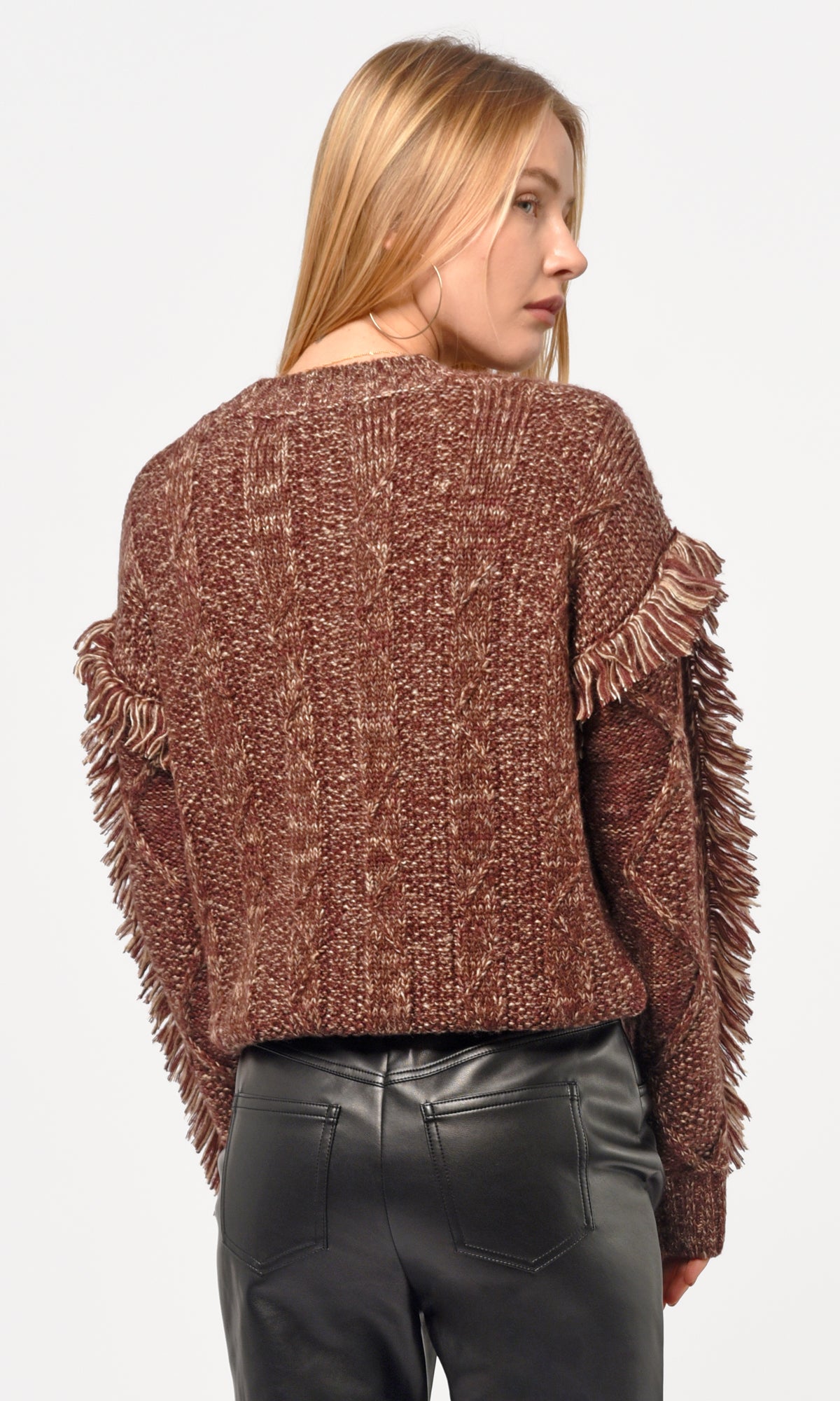 This sweater has been designed to give an authentic vintage look. It's knitted with fringed edges that give it a unique look and feel. The marled pattern adds texture and depth. The piece is perfect for adding a touch of class to any look.