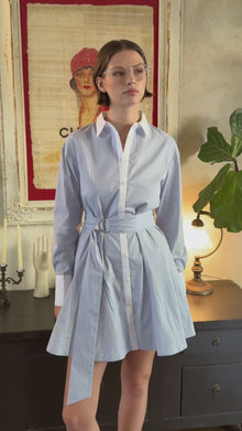Faith Stripe Godet Mini Shirt Dress