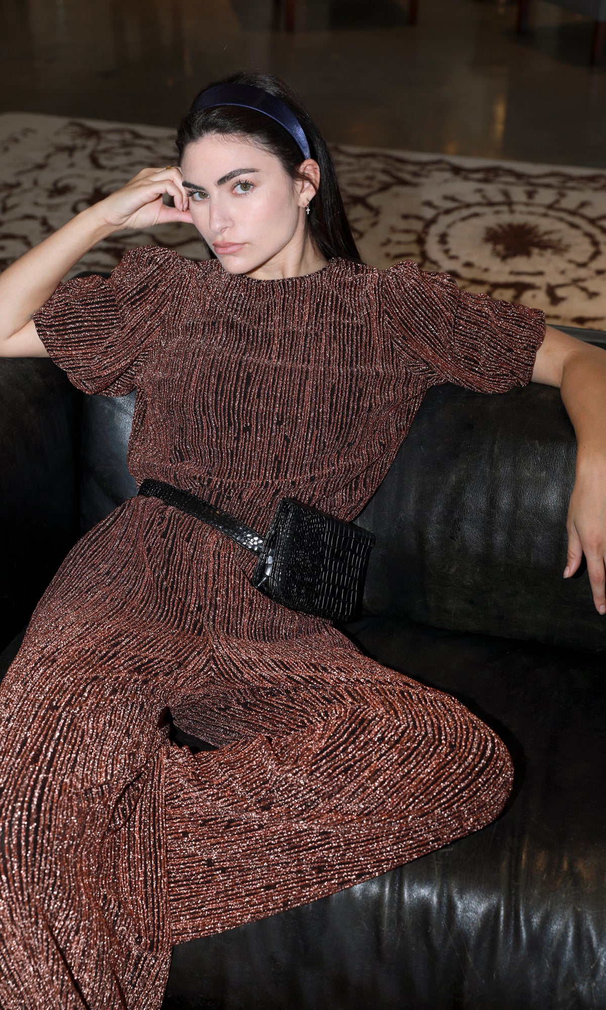 Felicia Lurex Knit Pouf Sleeve Blouse