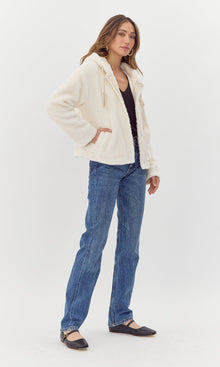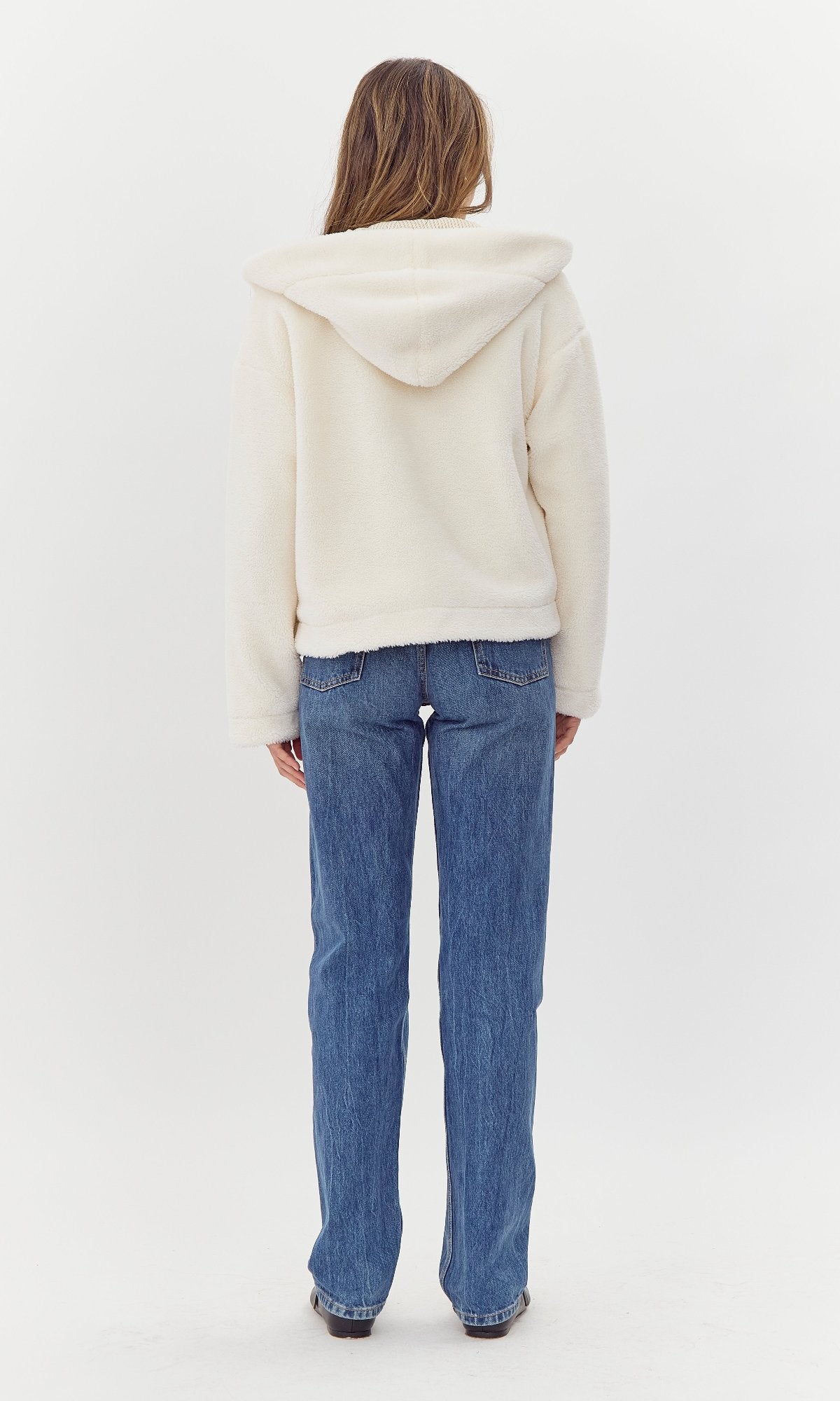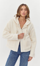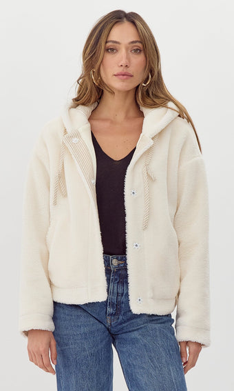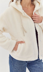 Sherpa hoodies installed with a snap button closure, pockets, and a drawstring.