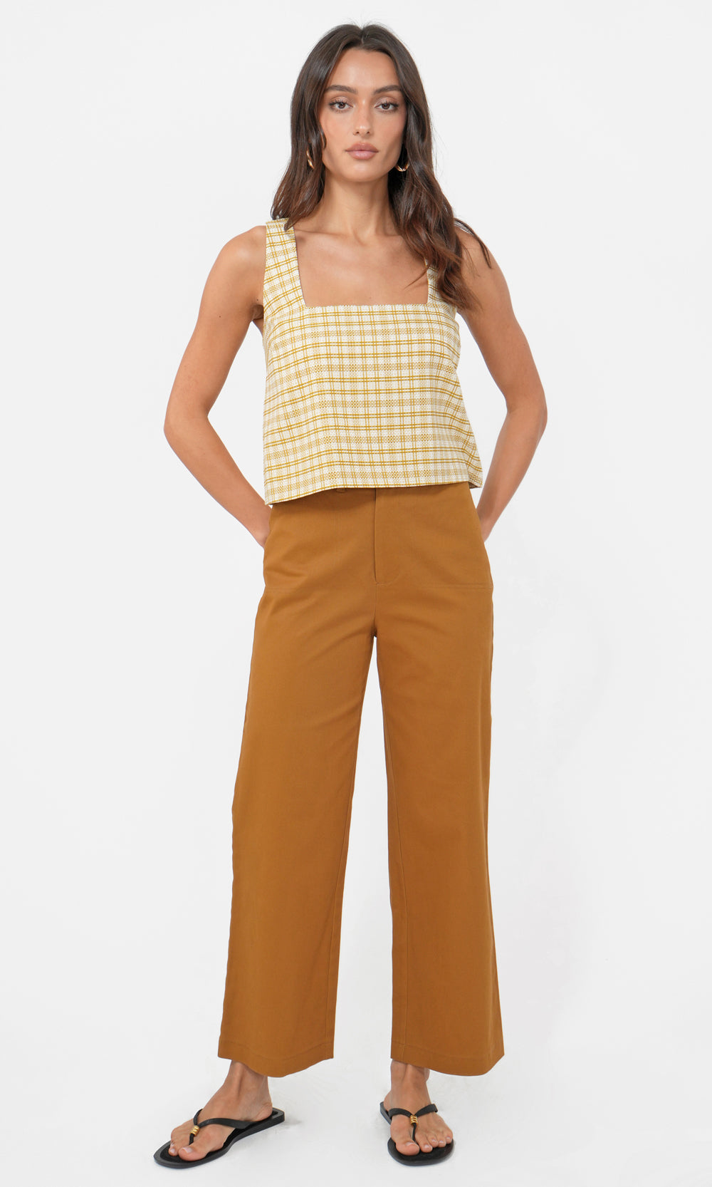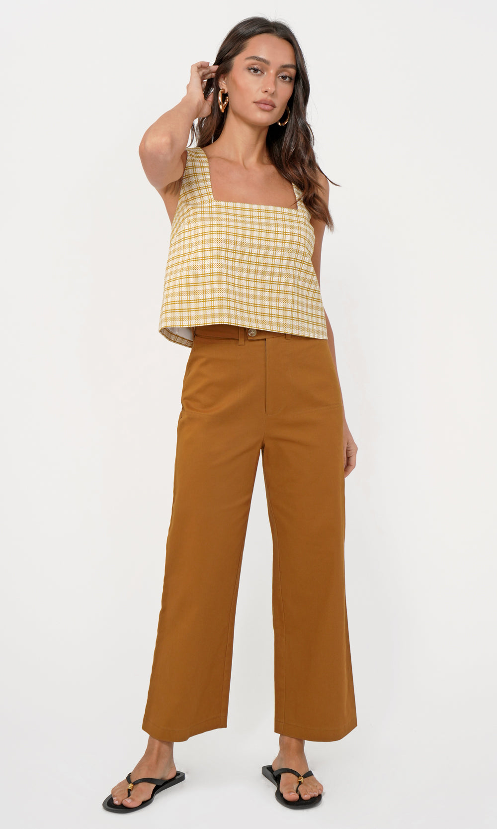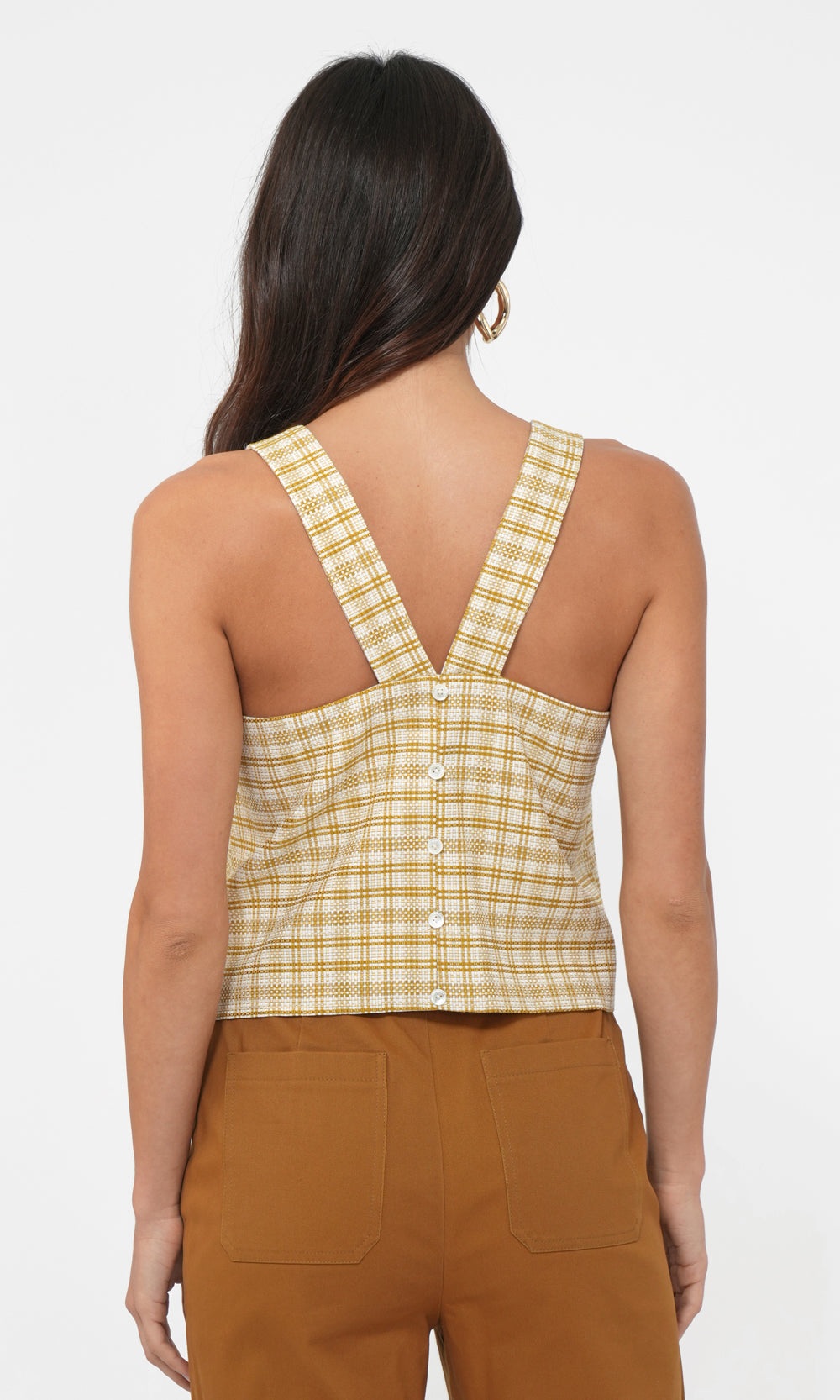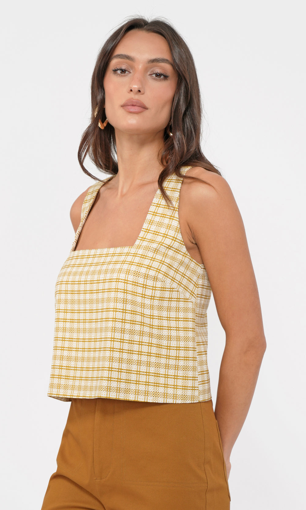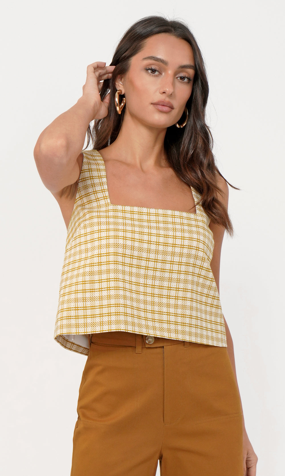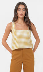 Picnic-patterned square neck top. Pairs perfectly with wide-legged pants or can be completed with the matching Joslyn High Waist Shorts. It's a wonderful piece for outdoor occasions.