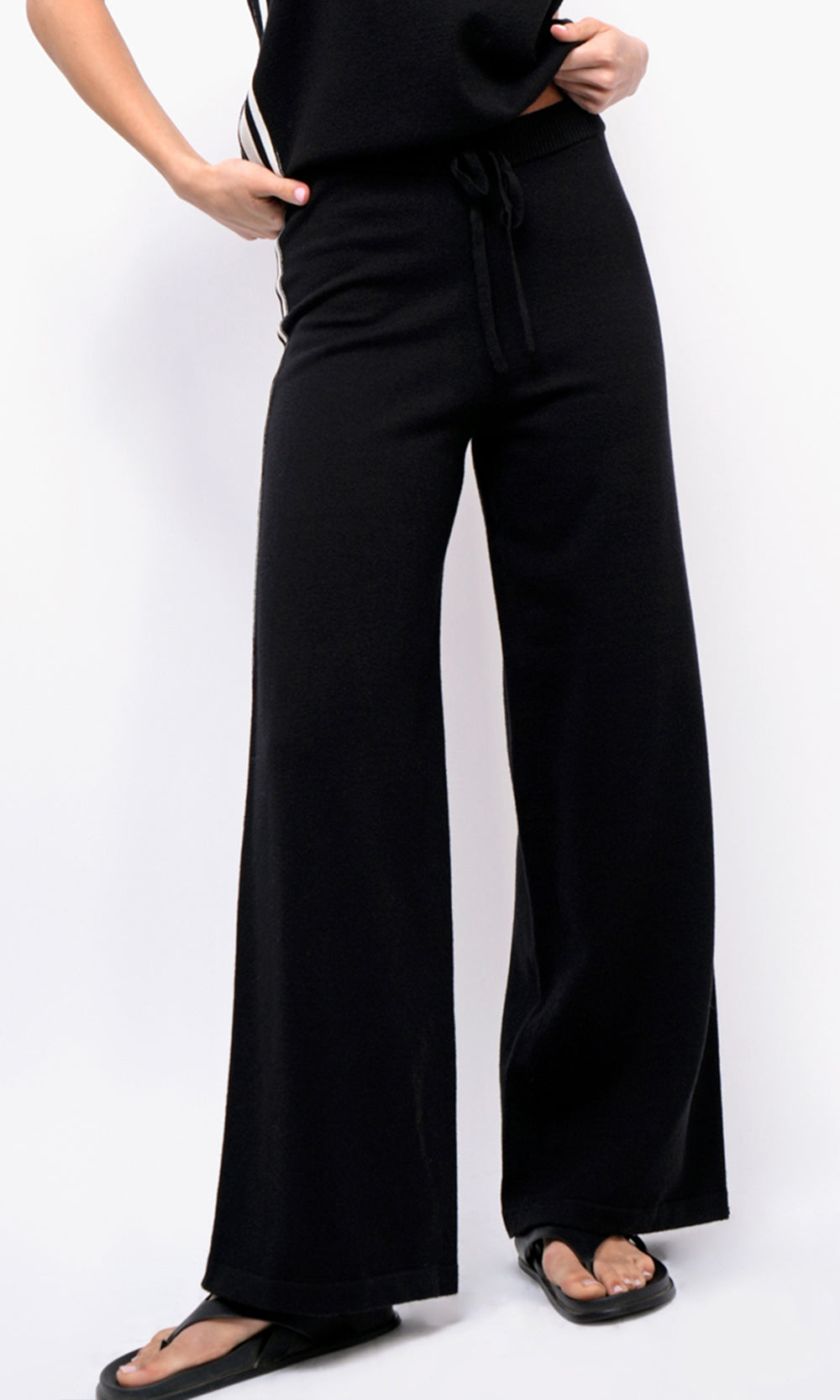 A sport-inspired staple with a polished twist. The Julien Pants are crafted from a soft, midweight knit and feature a relaxed wide-leg silhouette, contrast side stripes, and a stretchy ribbed waistband with an adjustable drawstring tie. Whether you’re keeping it casual or styling it up, this pair makes looking put-together feel completely effortless. Part of a matching set with the Weston Top.