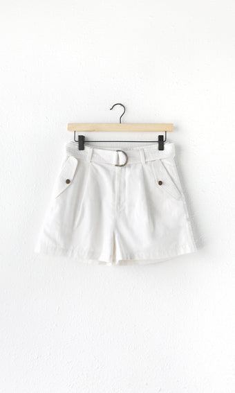 Summery shorts adorned with removable ring belt and button details on the pockets. Wear with any blouse to change the attitude of the outfit.