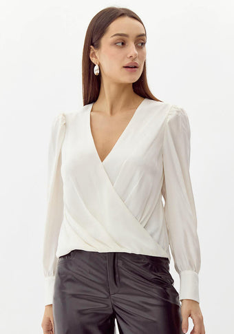 Lourdes Wrap Front Cuffed Blouse