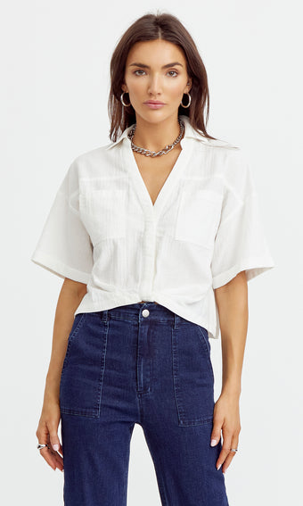 Short-sleeve, cotton shirt with front chest pockets. Easy warm weather staple for most occasions.