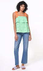 A popover top with a subtly feminine finish, this Pali Embroidered Top blouse features self-tie shoulder straps, honeycomb eyelet embroidery throughout, and a button placket along the back.