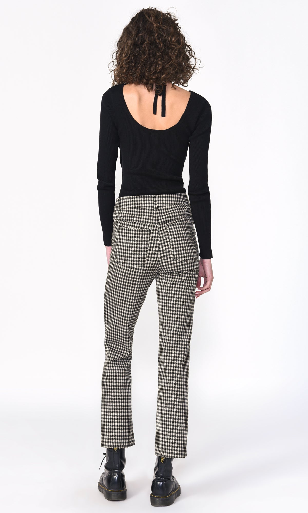 Check mate. These check print trousers were made for office days to drink dates. Featuring a tapered fit, these pants feature an all-around check print, faux front pockets, a zipper fly to a hook and bar closure along the front, patch pockets on the back, and belt loops.